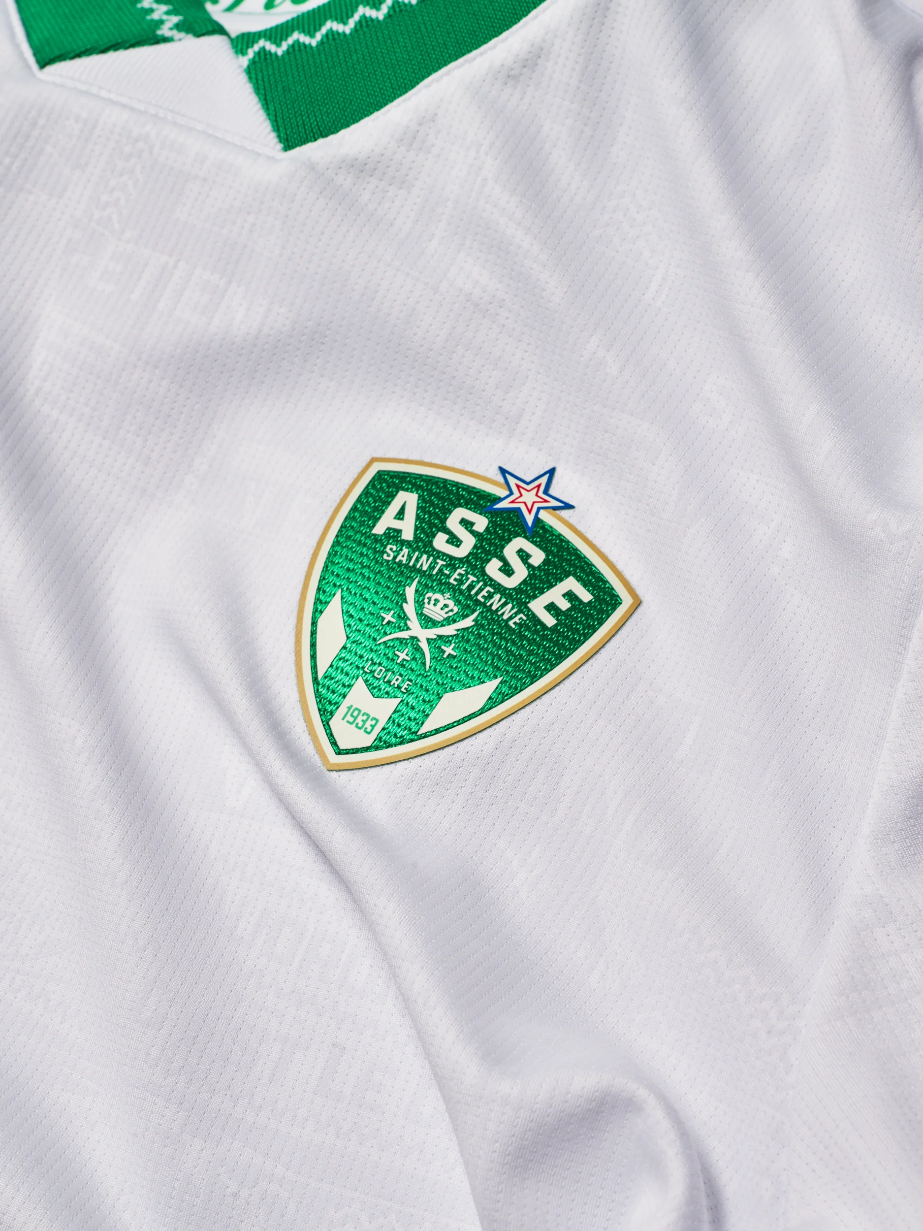 Et c’est elle qui en parle le mieux. « Ce maillot est un hommage vibrant à celles et ceux sans qui le club ne serait pas ce qu’il est : ses supporters, raconte la talentueuse styliste. Ceux qui chantent à Geoffroy-Guichard, bien sûr, mais surtout ceux qui suivent les Verts dans tous leurs déplacements, par tous les temps, match après match, saison après saison. Ceux qui transforment les parcages visiteurs en petits bouts de Chaudron. J’ai imaginé ce maillot comme une tribune textile où l’on découvre un motif embossé représentant un mur d’écharpes, de drapeaux, de messages, autant de symboles forts des tribunes stéphanoises. Ce travail en relief permet au tissu de vibrer presque comme un chant collectif, apportant de la texture, de la profondeur et de l’émotion. Chaque élément raconte une histoire. Sur le col et les manches, une ligne reprend les codes visuels de la célèbre écharpe zigzag brandie dans les stades. Un clin d’œil graphique, discret mais assumé, à ces objets fétiches que l’on serre, que l’on lève, que l’on transmet parfois. Des symboles de fidélité inébranlable, même dans les moments les plus durs. Ce maillot, c’est un hommage aux supporters des Verts, ceux qui sont là, toujours. C’est un rappel que l’esprit stéphanois ne se limite pas à une enceinte, mais qu’il voyage, qu’il se vit et se crie partout.«