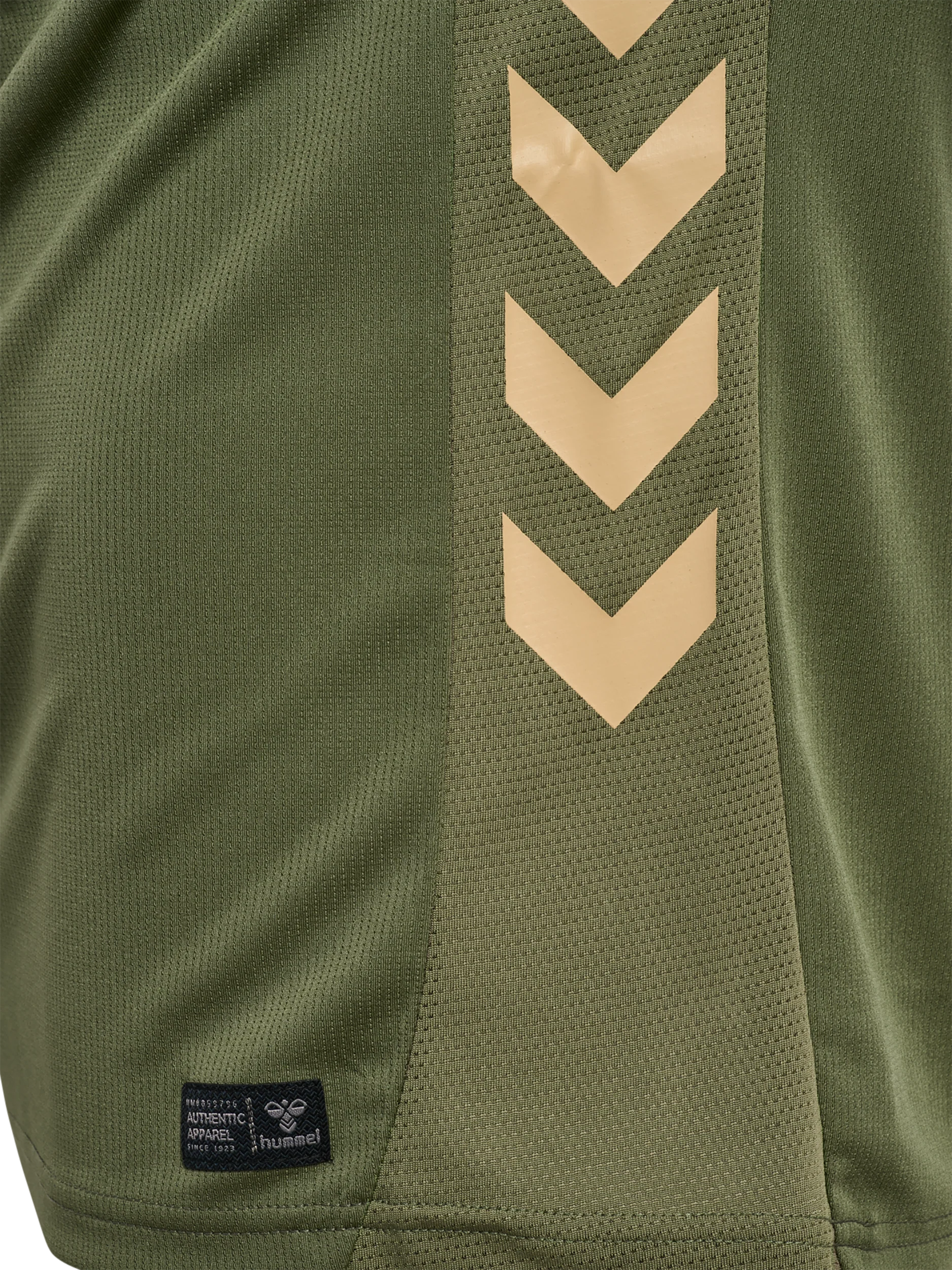 Également disponible en version manches longues, il est complété par un short et des chaussettes kaki aux détails beiges dans une tunique uniforme.