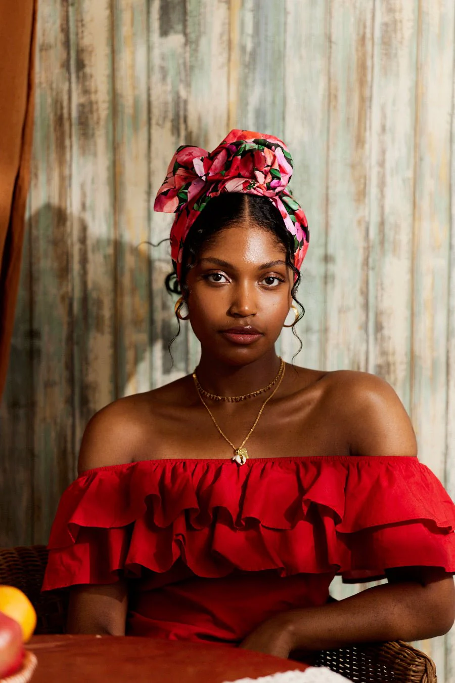 Turban à motif fleuri vif et intense sur fond rose fuchsia. Gabriella est l’accessoire fort pour un look rétro chic ou une silhouette estivale affirmée.