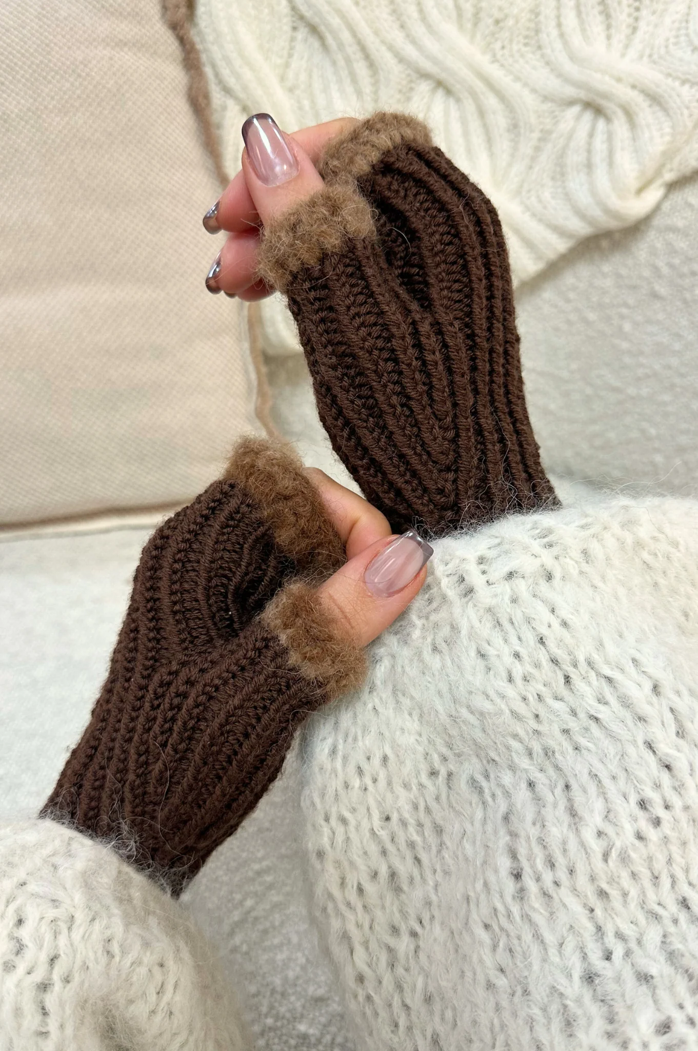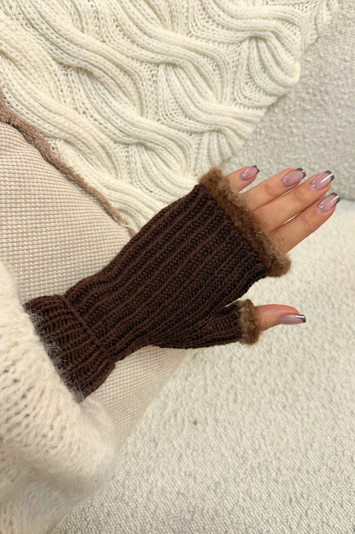 – Bordures fluffy en fils d’alpaga