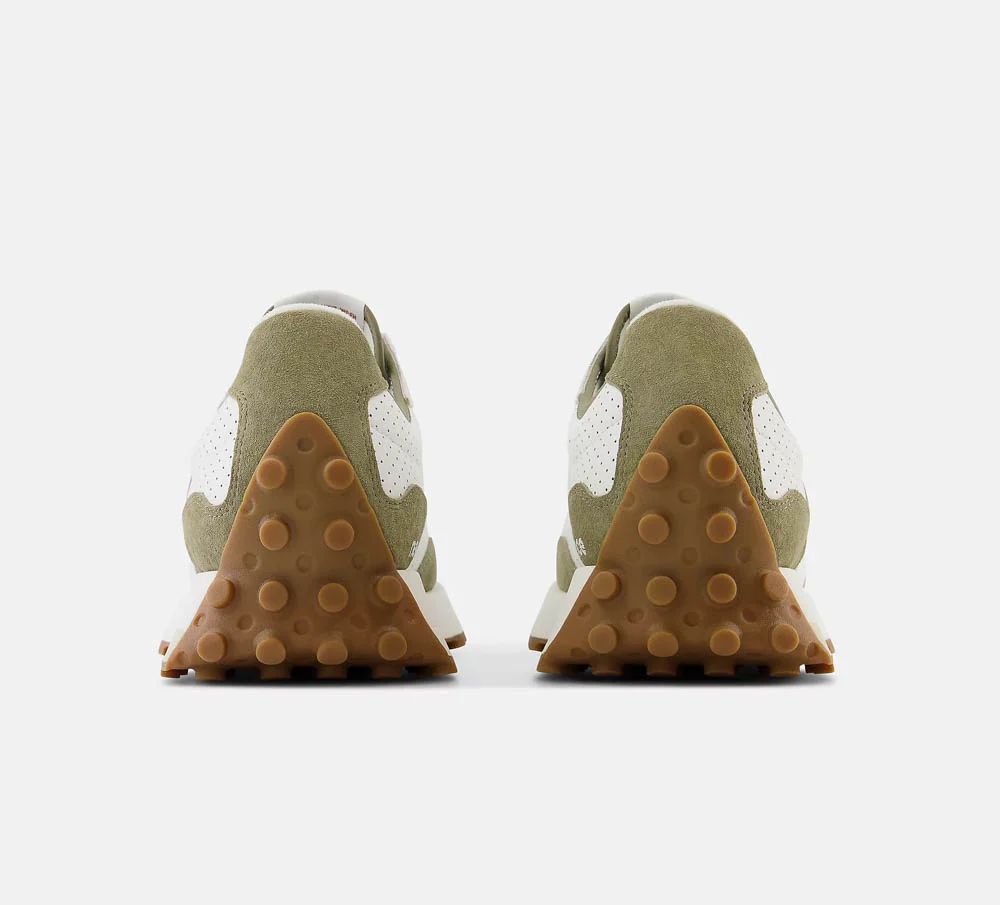 La chaussure New Balance 327 est équipée d’une semelle intermédiaire en mousse EVA qui offre un amorti optimal pour une utilisation prolongée. La semelle extérieure en caoutchouc assure une excellente traction pour une adhérence accrue sur toutes les surfaces.