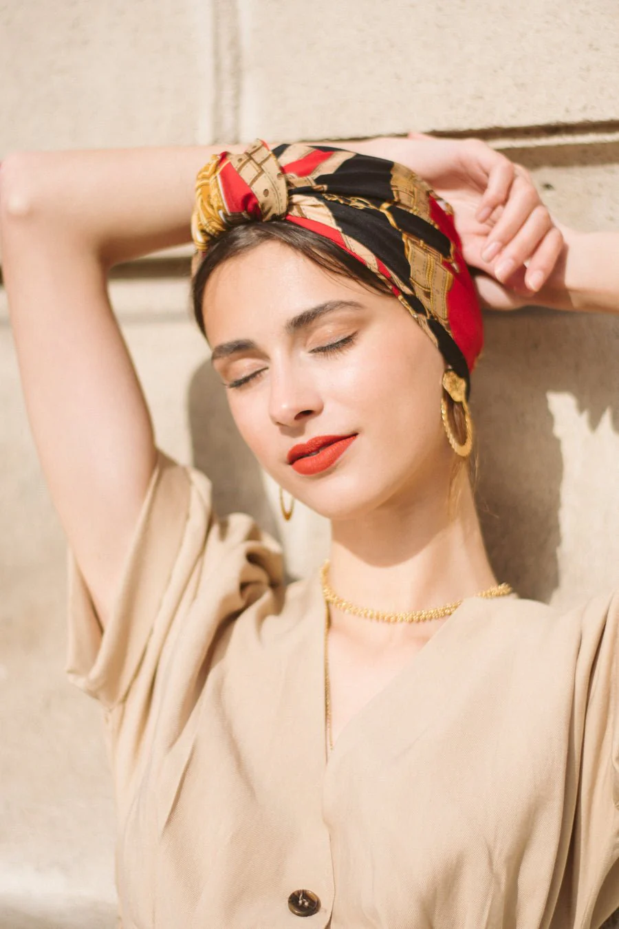 Foulard cheveux facile à nouer en soie naturelle – Corail