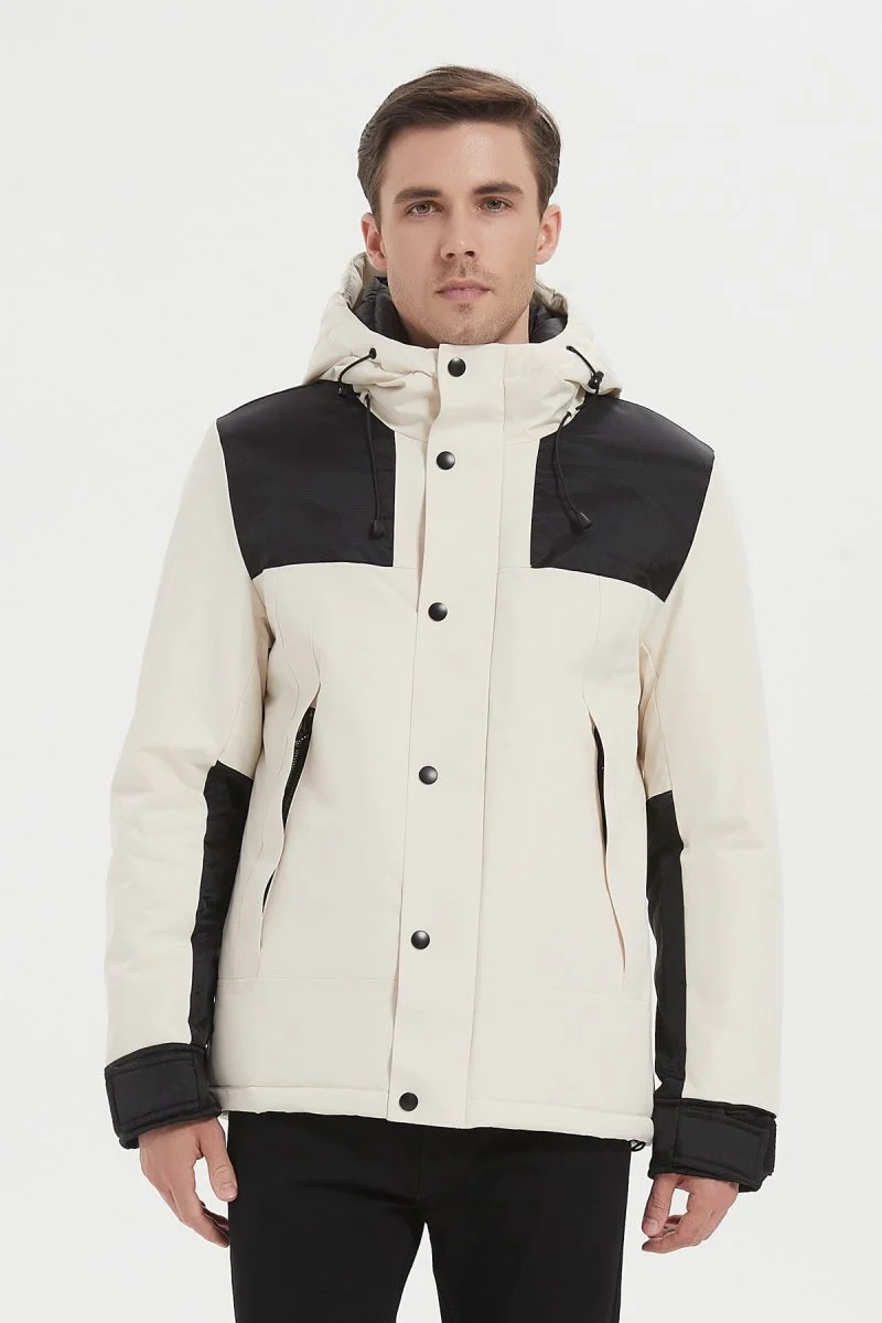 Parka bouffante coupe droite, Empiècements bicolores sur les épaules, Fermeture à glissière avec patte de boutonnage à pressions, Capuche snood avec cordon de serrage, Larges poignets à scratchs, 2 poches zippées sur les côtés avec rabats assortis, Tissu déperlant « Water Repellent Technology »