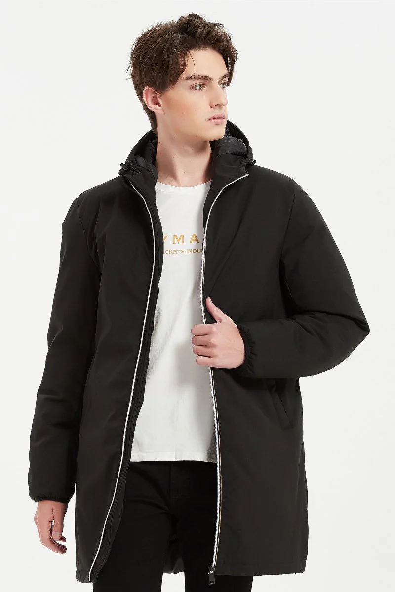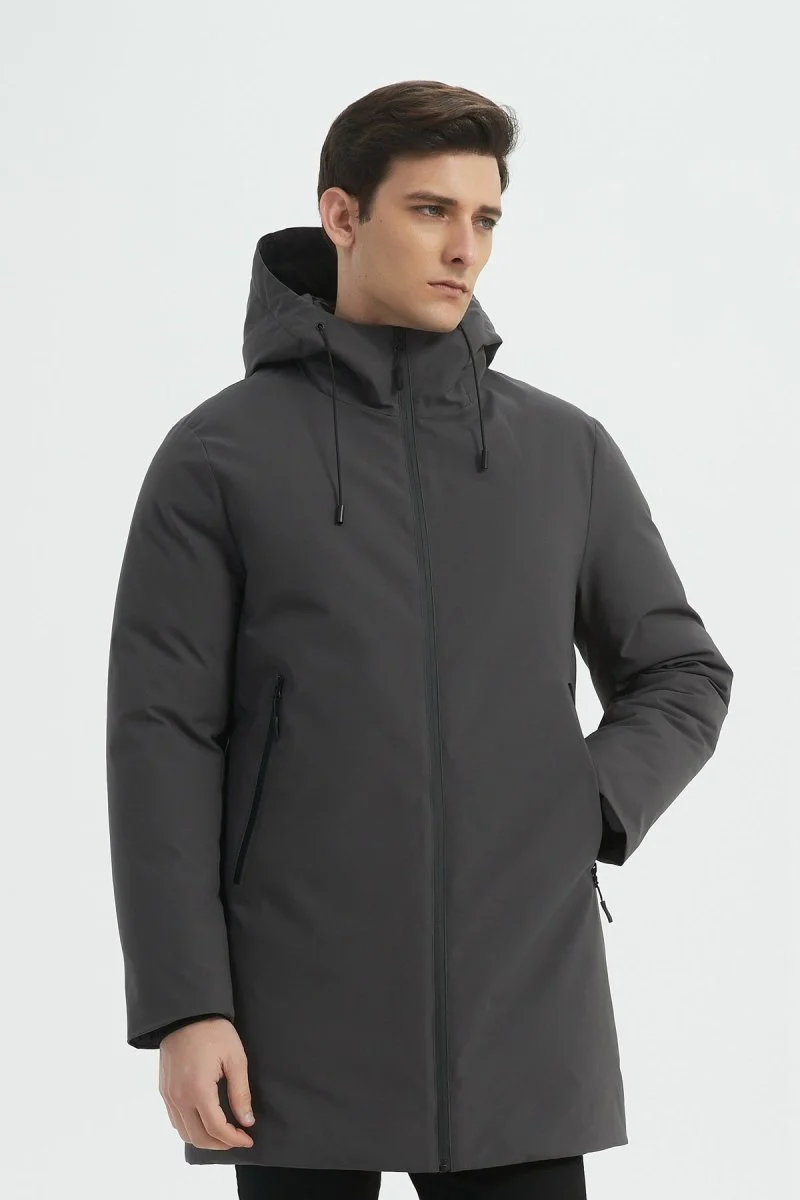 Parka longue à capuche en tissu déperlant