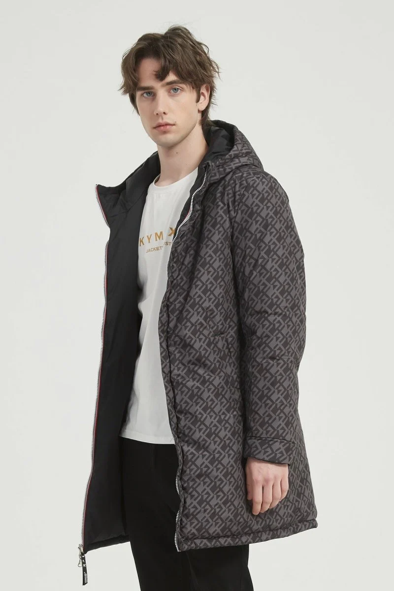 Parka longue réversible pour homme, avec capuche intégrée et fermeture zippée double curseur. Une face unie sobre et une face imprimée discrète pour changer de style selon l’humeur. Matelassage chaud et poches latérales pratiques, parfaite pour affronter l’hiver avec confort et élégance.
