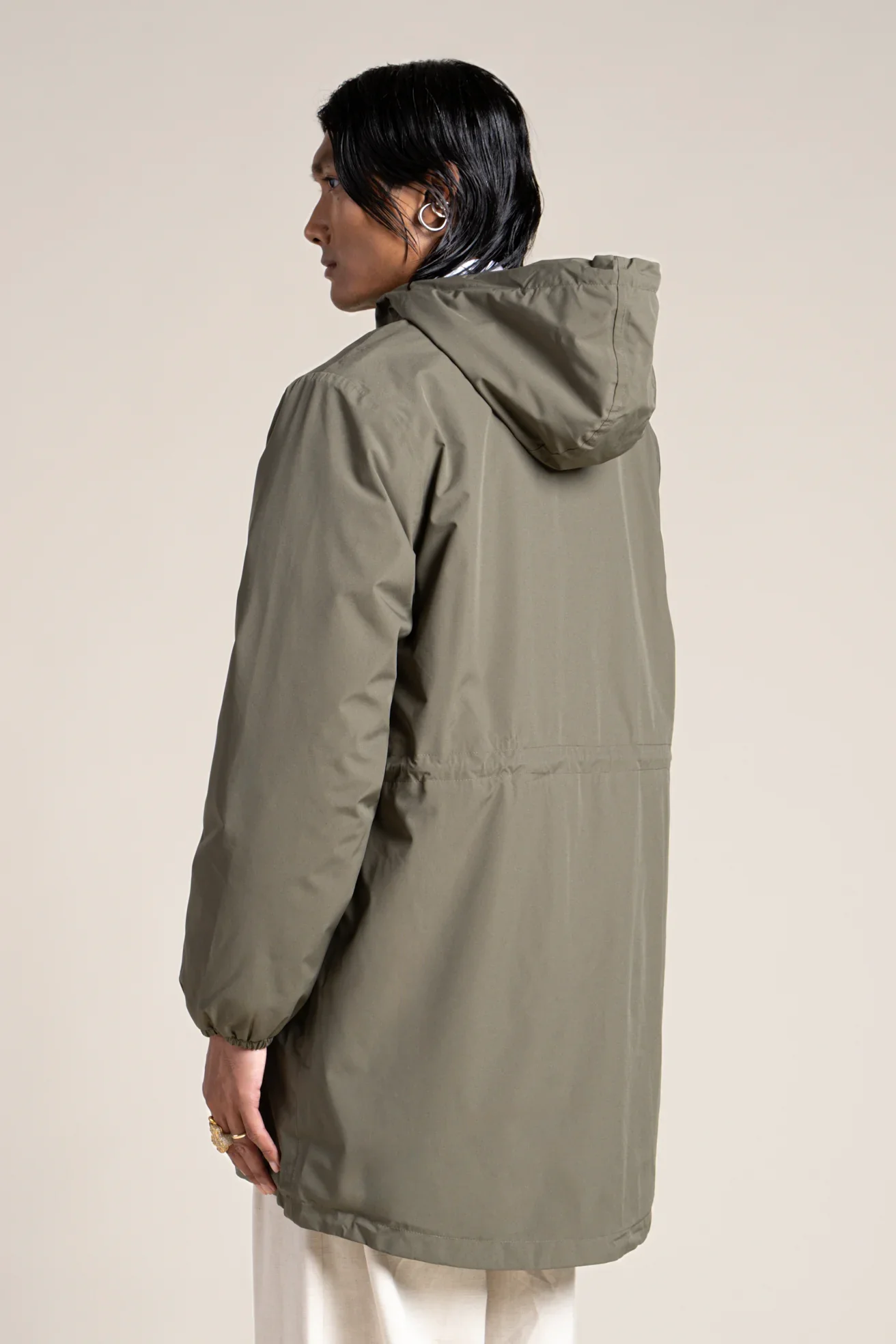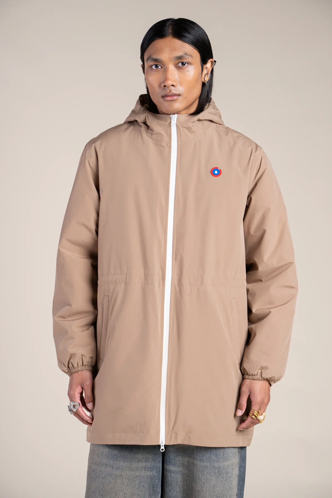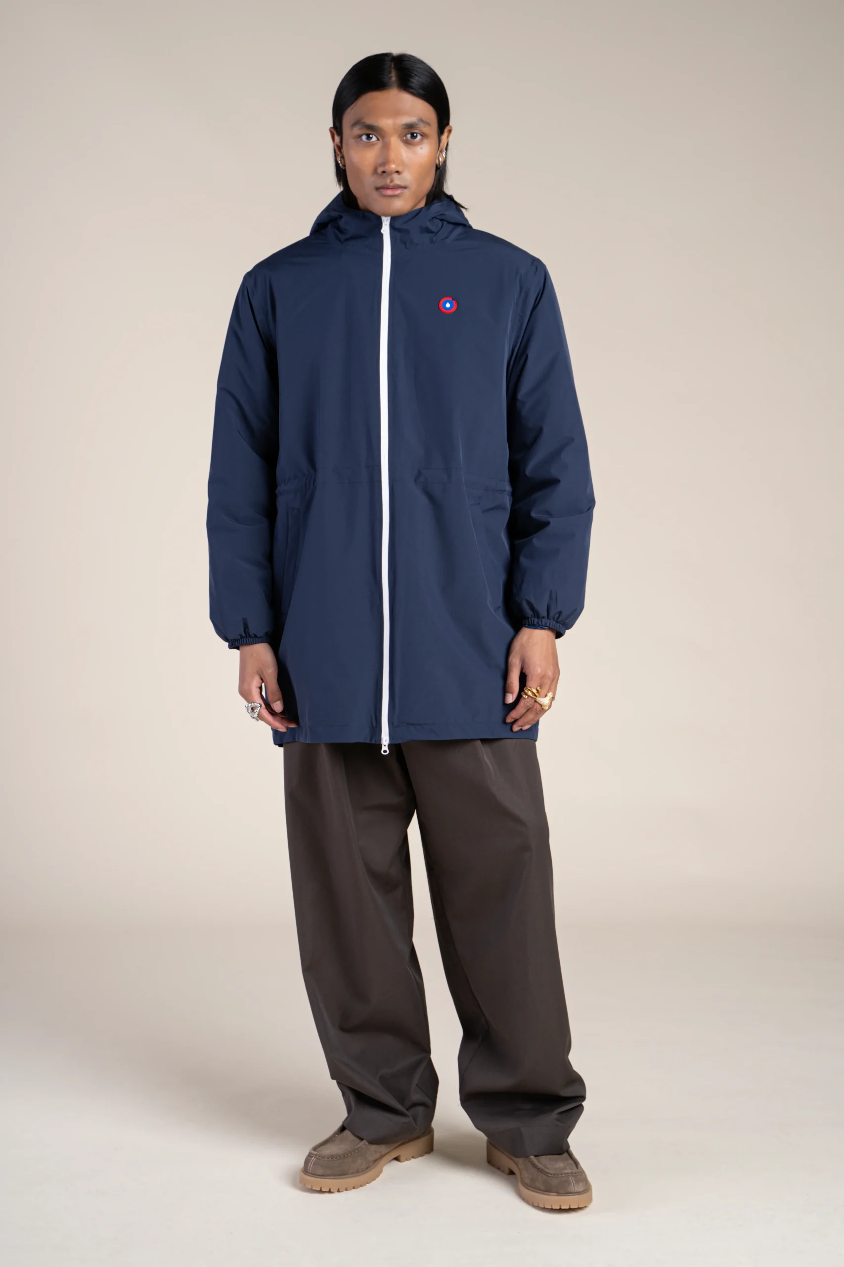 Une parka imperméable, longue et doublée en polaire. Tissu en polyester recyclé. Fermeture éclair à double-curseur.