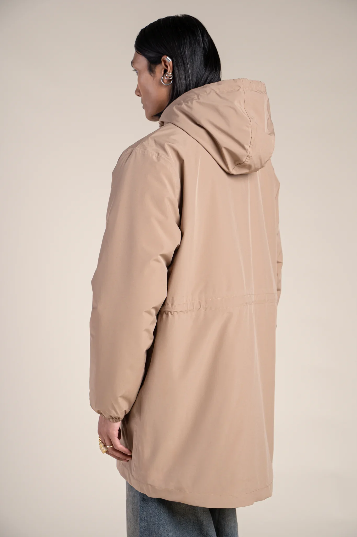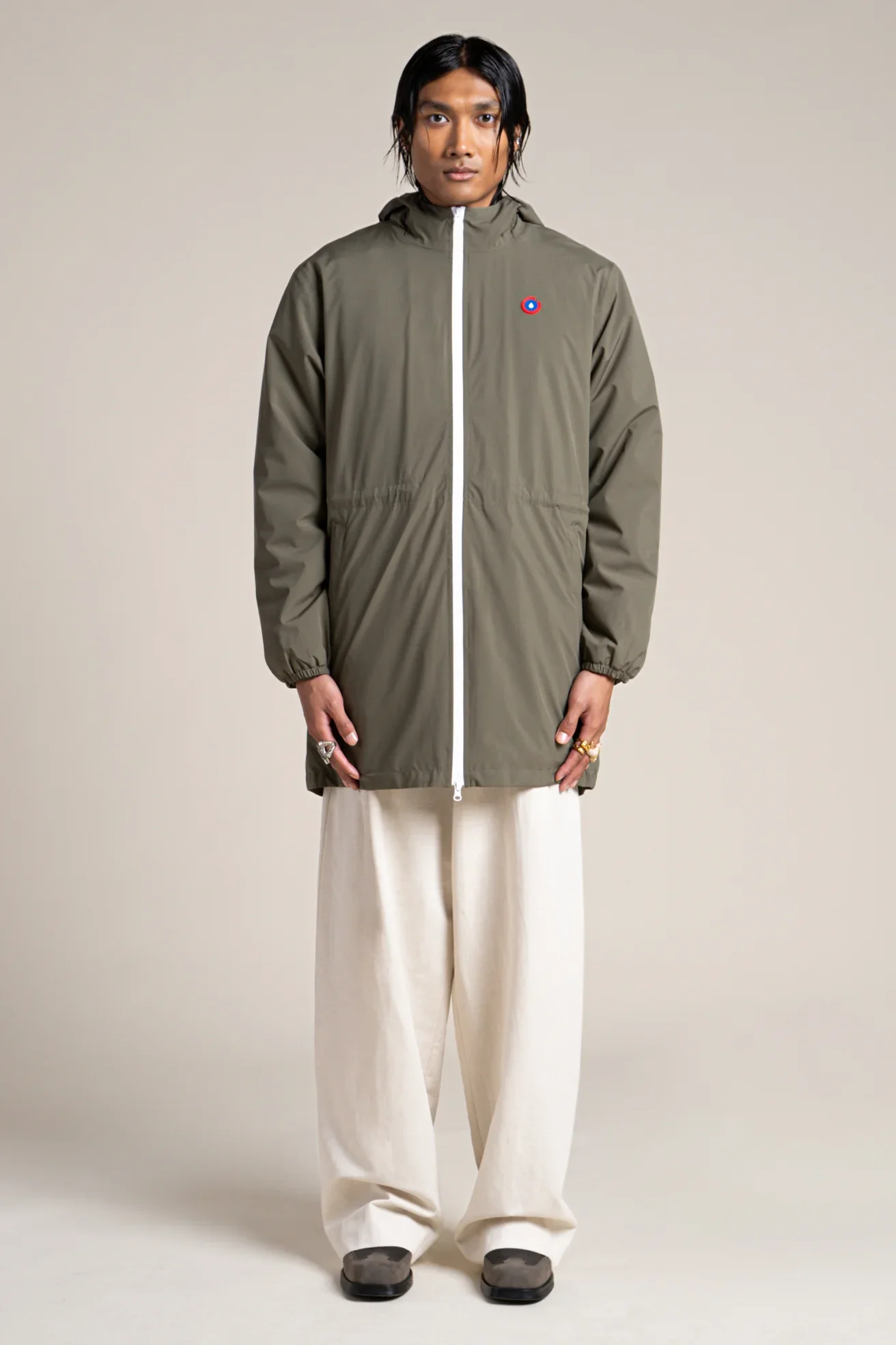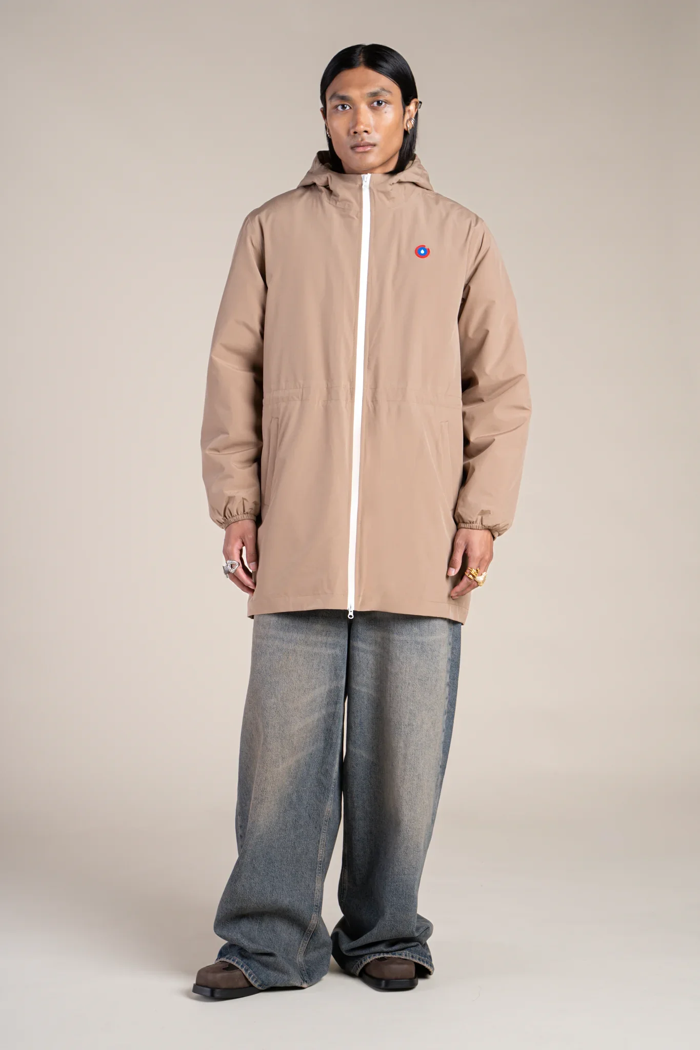 Une parka imperméable, longue et doublée en polaire. Tissu en polyester recyclé. Fermeture éclair à double-curseur.