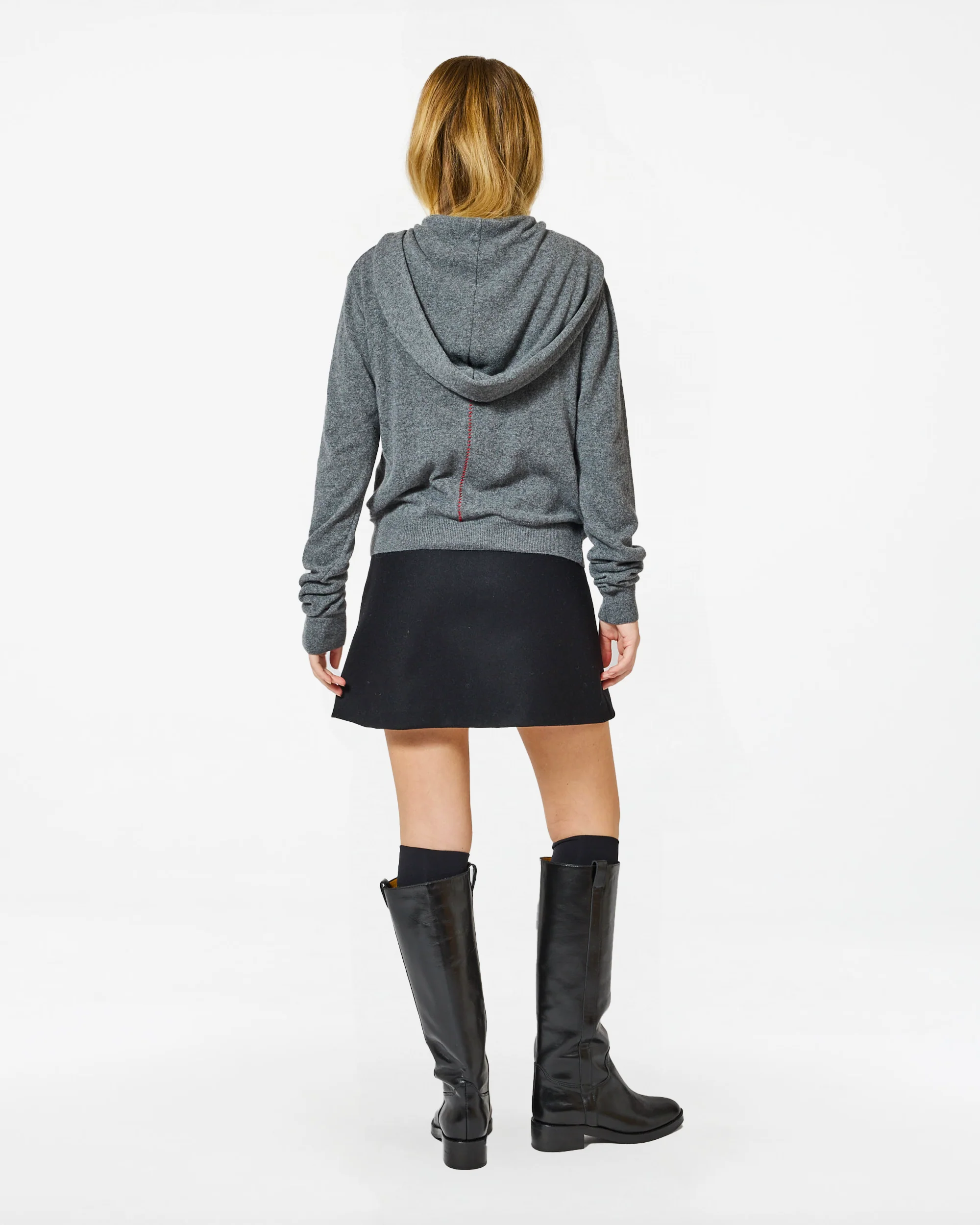 Le pull Maya séduit par sa coupe droite et son look décontracté-chic. Doté d’une capuche fermée par de petits boutons, il revisite le sweat à capuche avec une touche plus raffinée. Les finitions en bord-côte aux poignets assurent un maintien confortable, tandis que la ligne rouge faite main au centre du dos apporte une signature artisanale, discrète et précieuse.