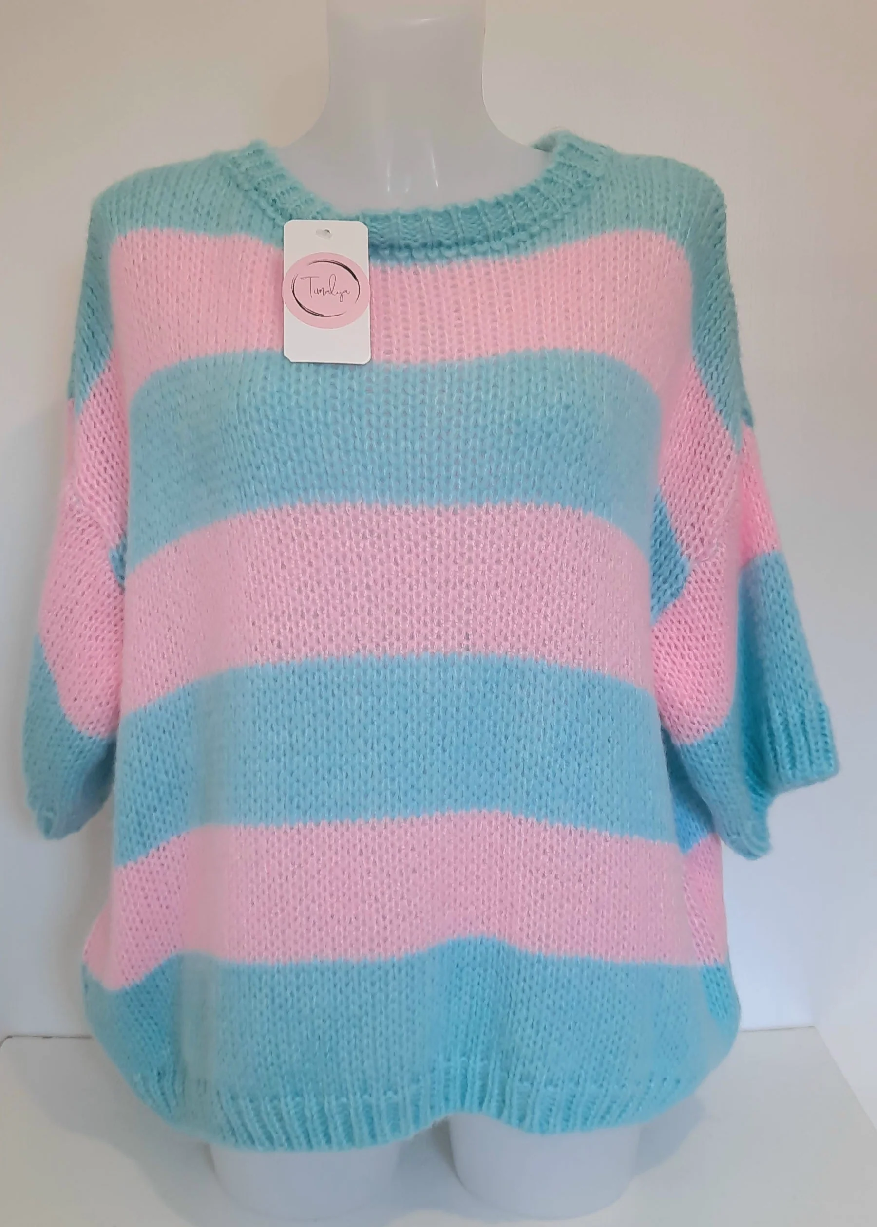 Pull oversize rayé rose & vert d’eau – Douceur et style