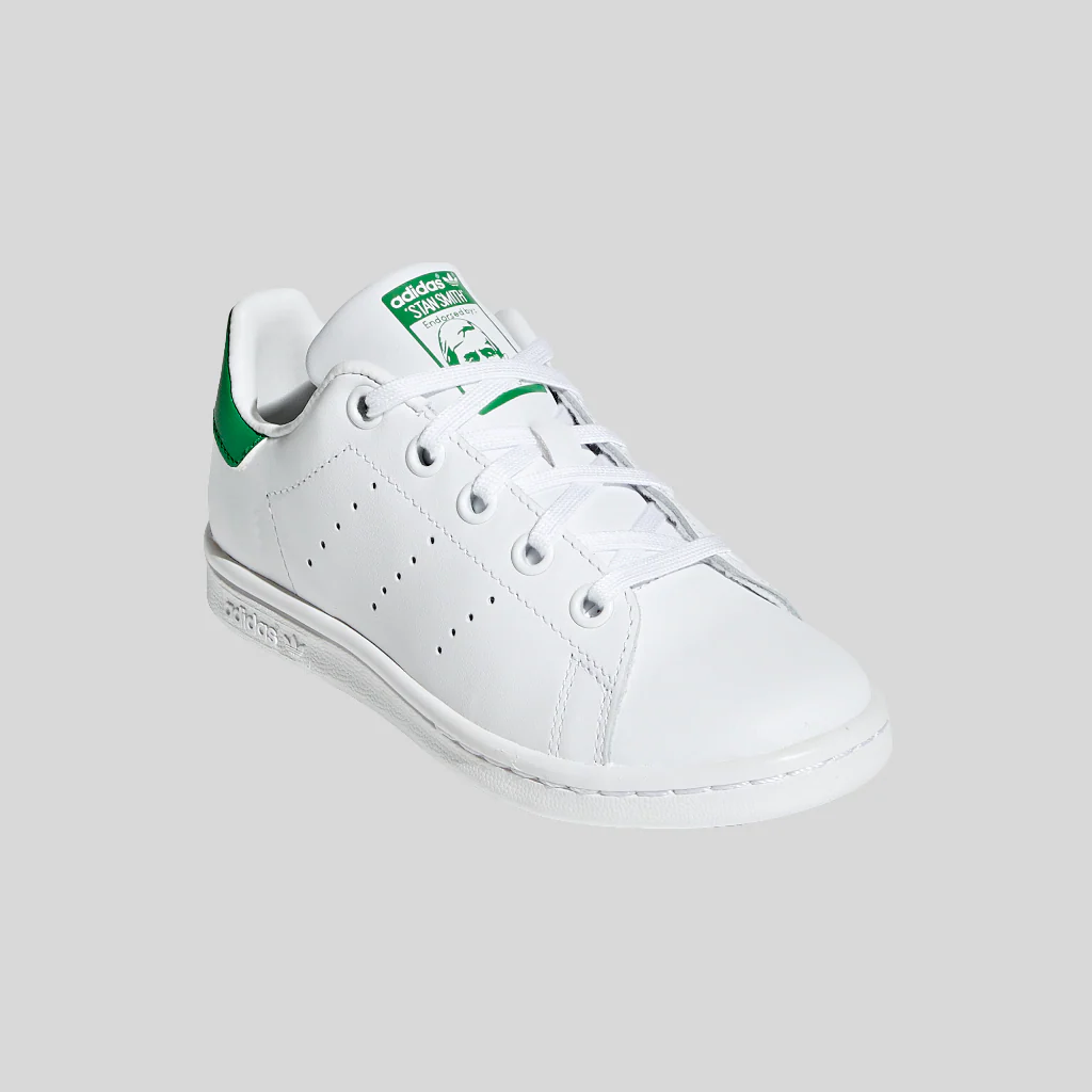 Une Stan Smith originale pour briller dans la cour de récré. Cette chaussure enfants reprend le modèle classique avec une semelle cupsole épurée et 3 bandes perforées. La tige en suède présente un imprimé à pois phosphorescent.