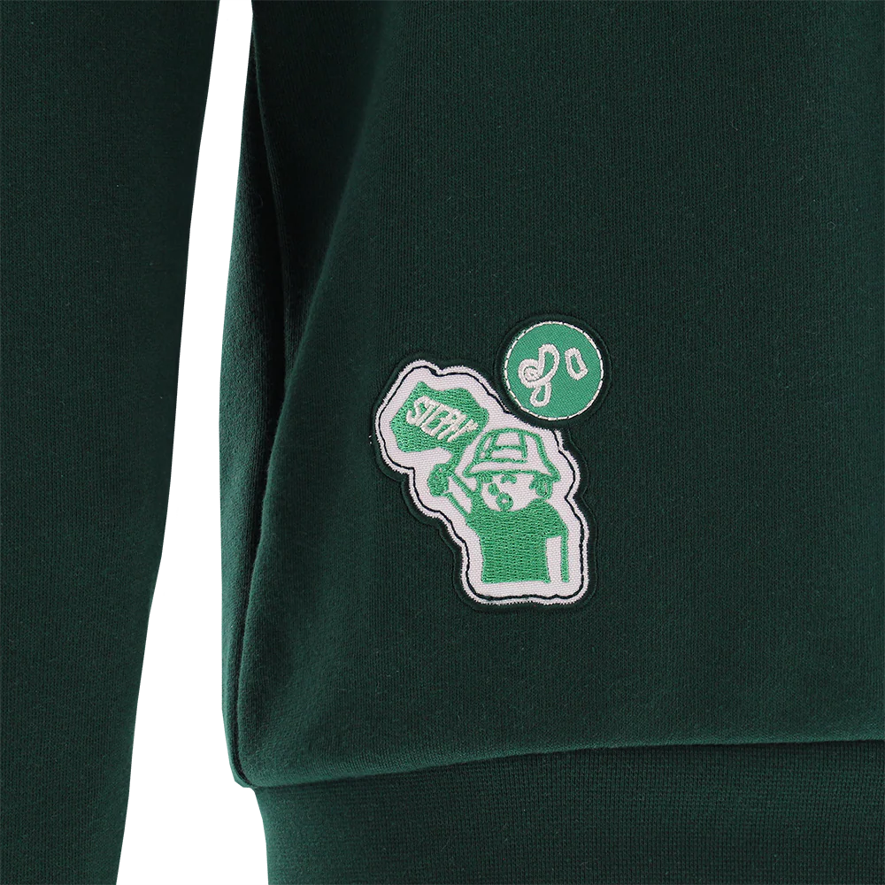 Vert et Fier. C’est ce que vous serez avec ces patchs répartis sur ce pull vert tout doux.