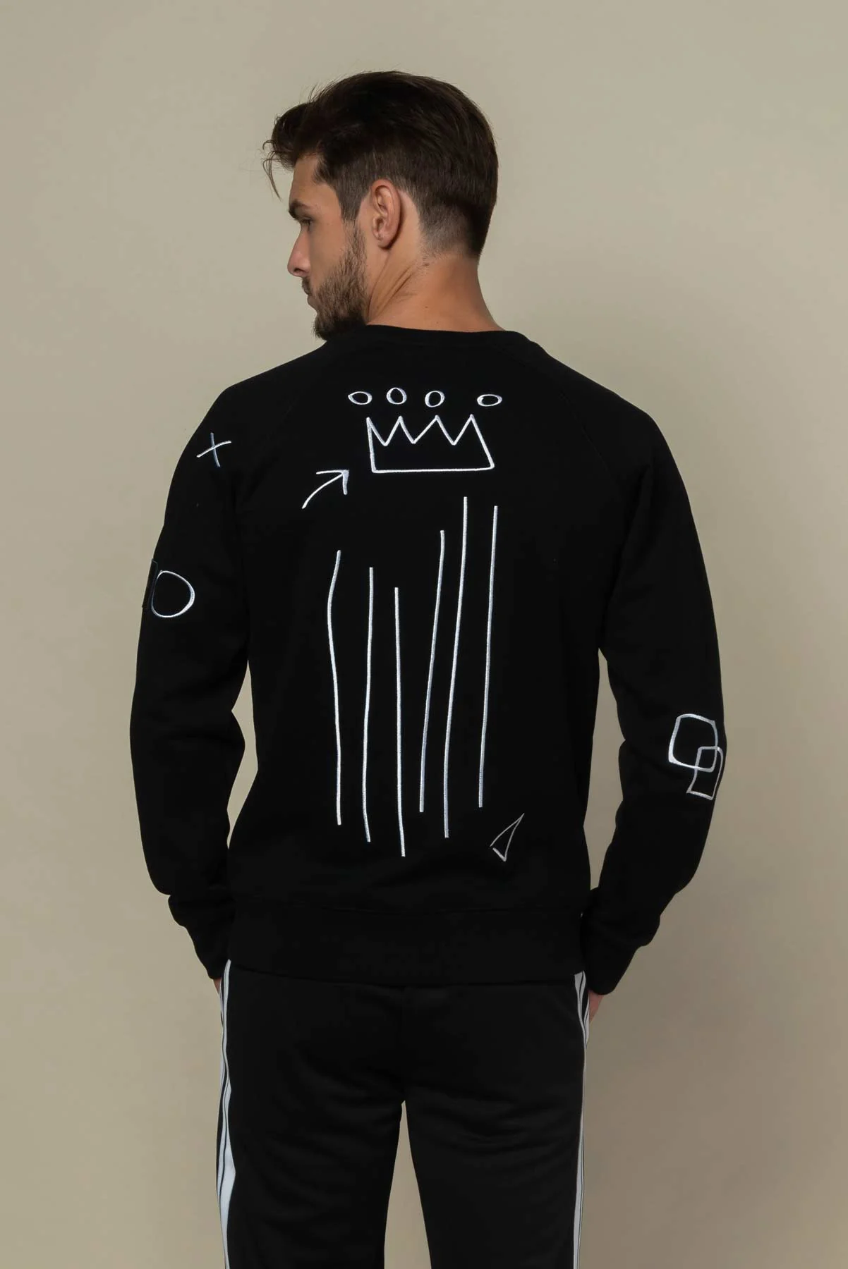 Une pièce magnifique que ce Crewneck noir aux manches longues et poignets côtelés.