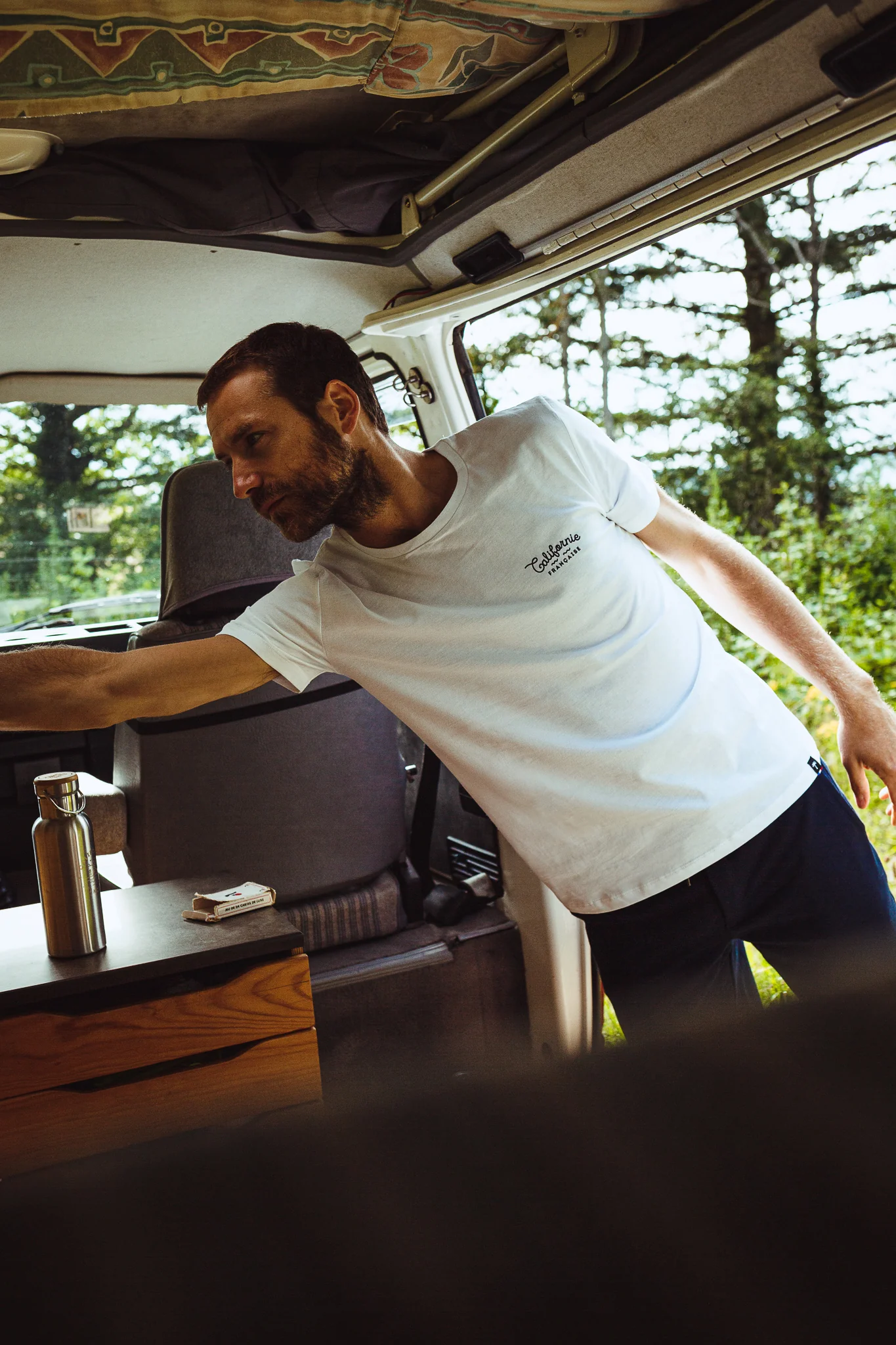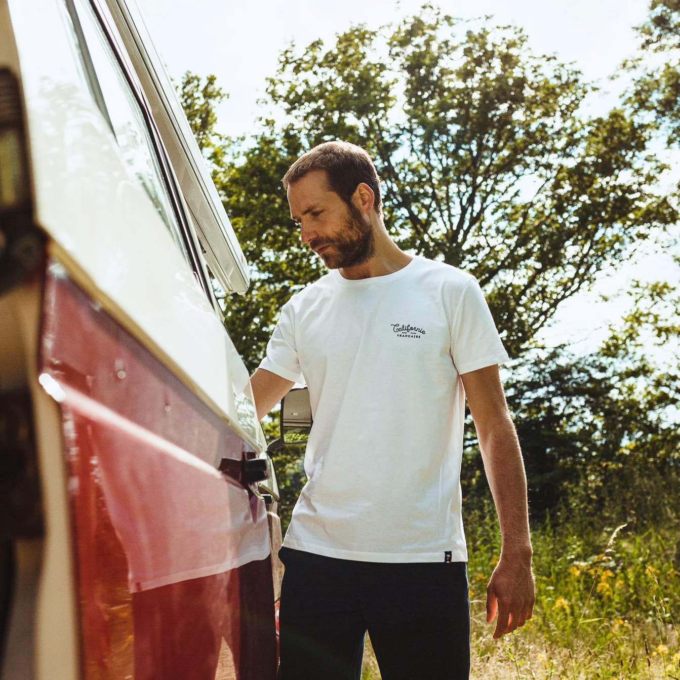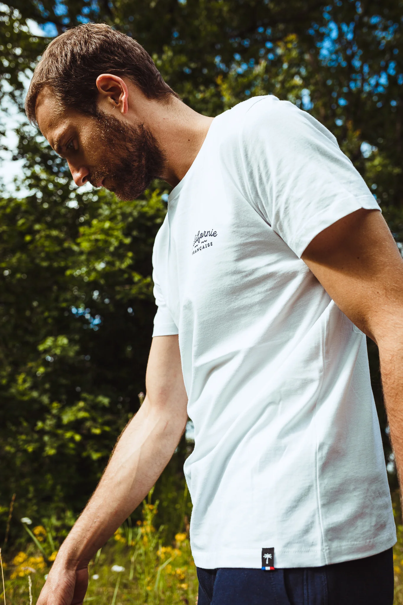 On a réussi notre pari de proposer un t-shirt entièrement fabriqué en France ! Le t-shirt est confectionné dans les Vosges en coton originaire de Turquie, puis sérigraphié en Californie Française, à Clermont-Ferrand.