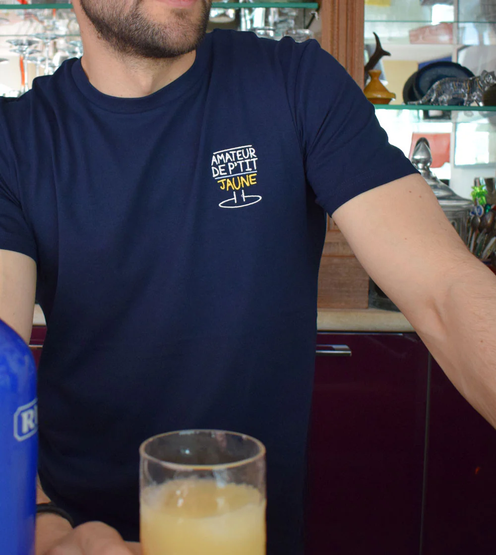 T-shirt brodé en coton biologique, qui sent bon l’été, les vacances pour les amateur de Pastis ensoleillé !