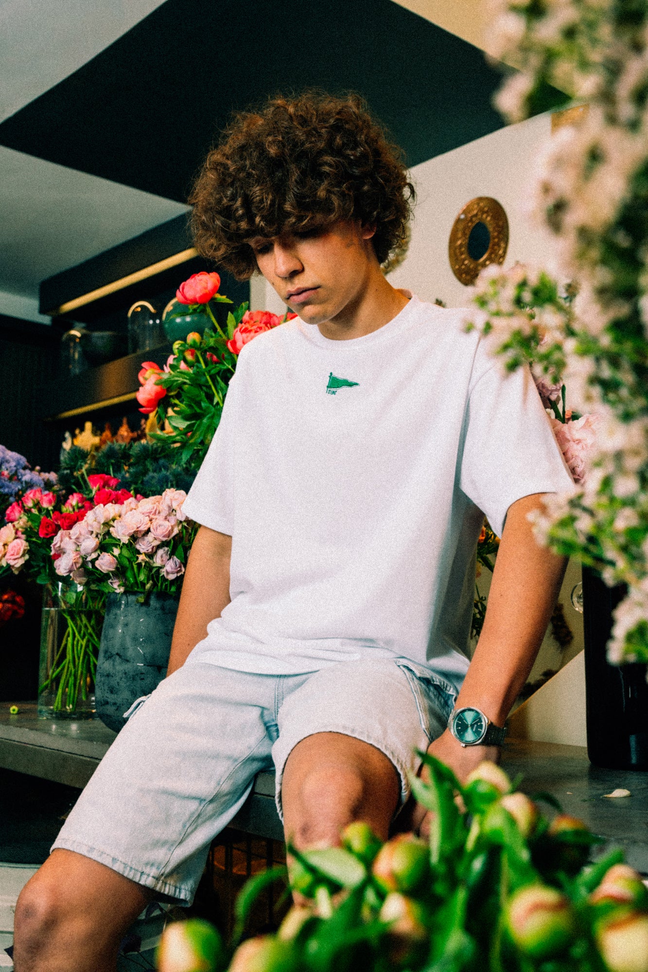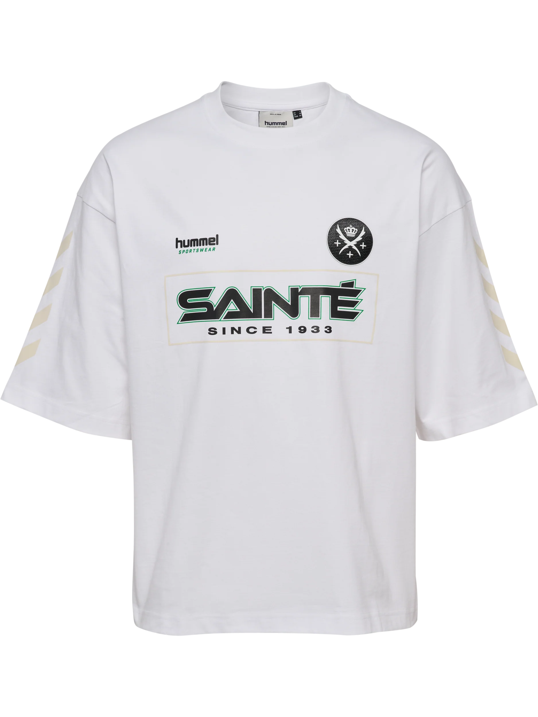 Râpées, musique, football. Affichez toutes les raisons d’être heureux à Saint-Étienne sur un t-shirt oversize blanc.