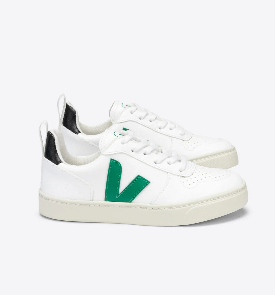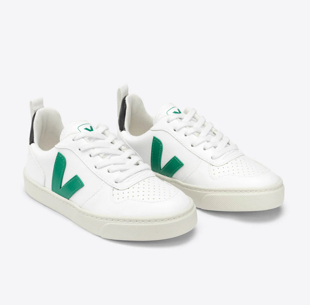 Le modèle Veja V-10 fabriqué dans une combinaison de matériaux écologiques et durables, symbolisant 10 ans d’amour.