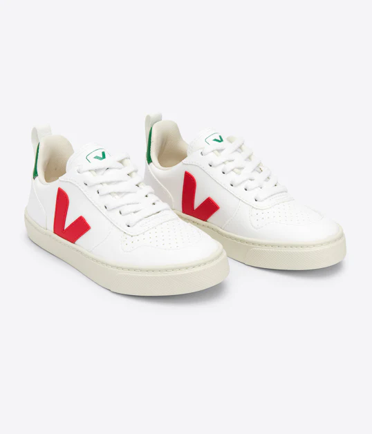 Le modèle Veja V-10 fabriqué dans une combinaison de matériaux écologiques et durables, symbolisant 10 ans d’amour.