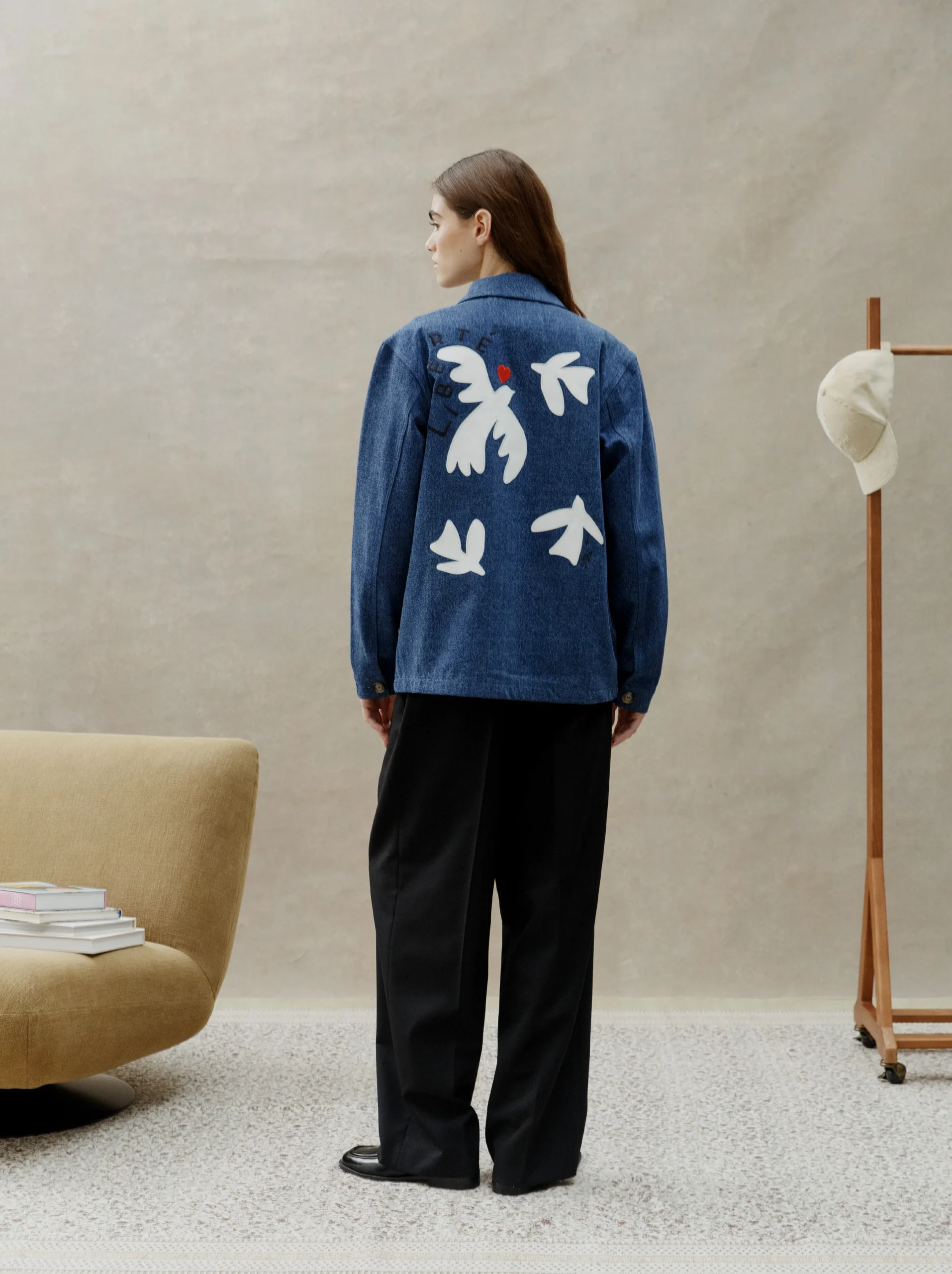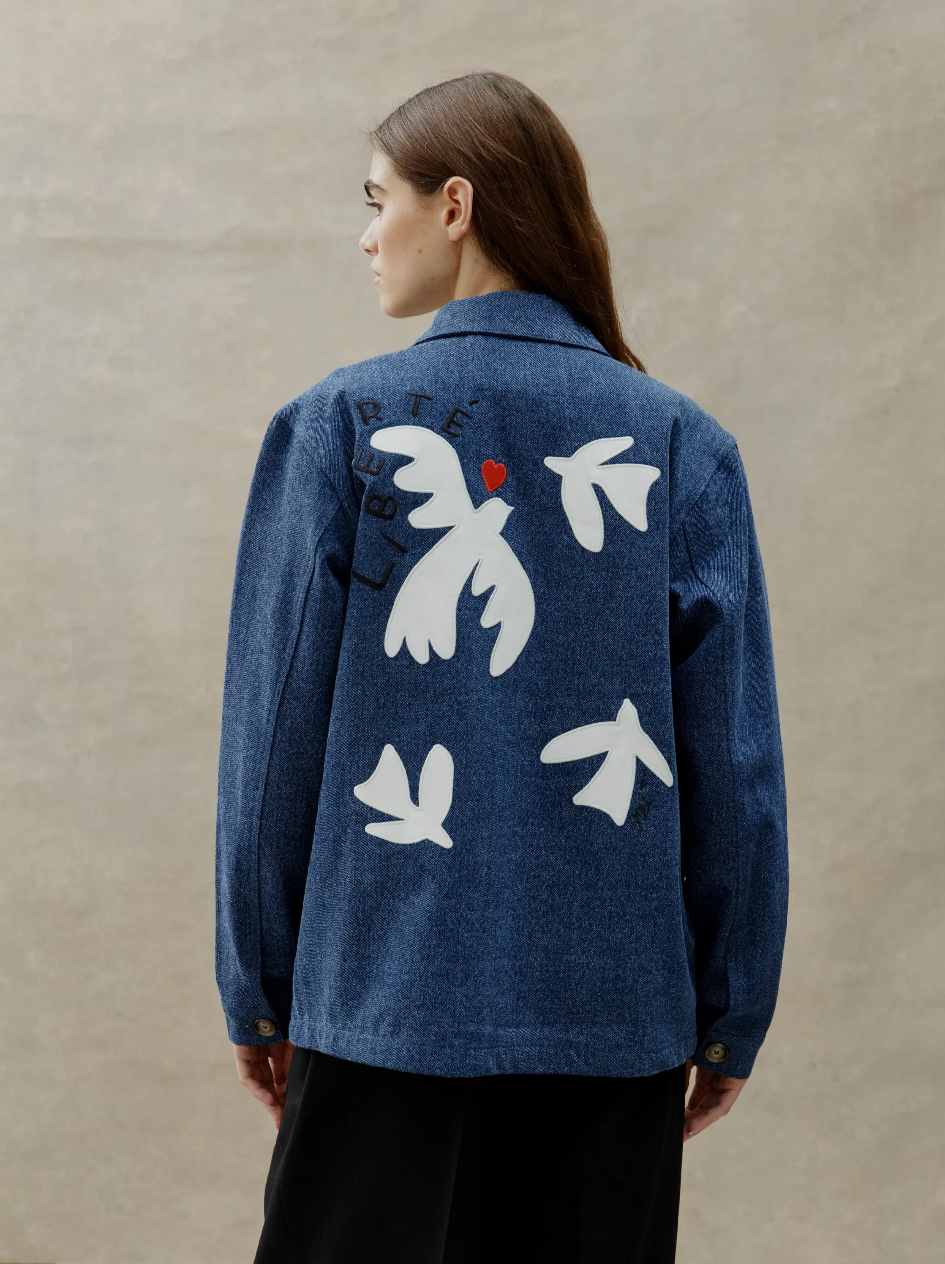 Veste brodée unisexe LIBERTÉ denim