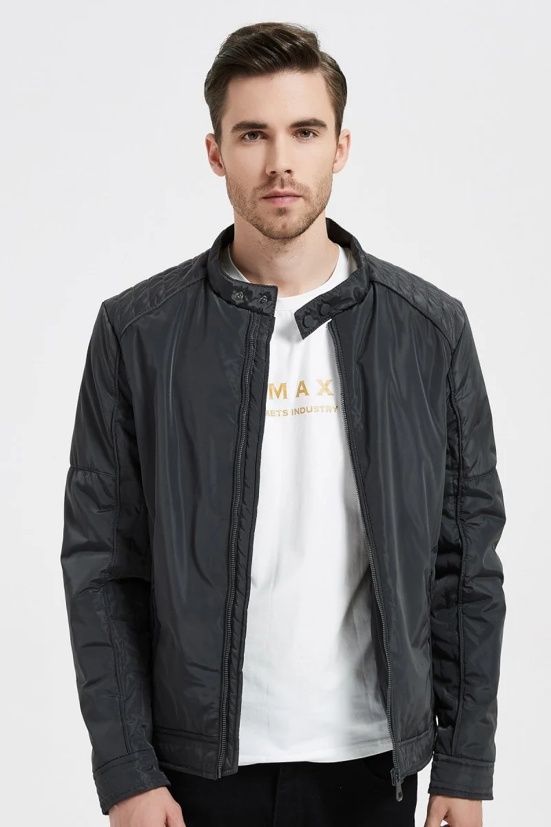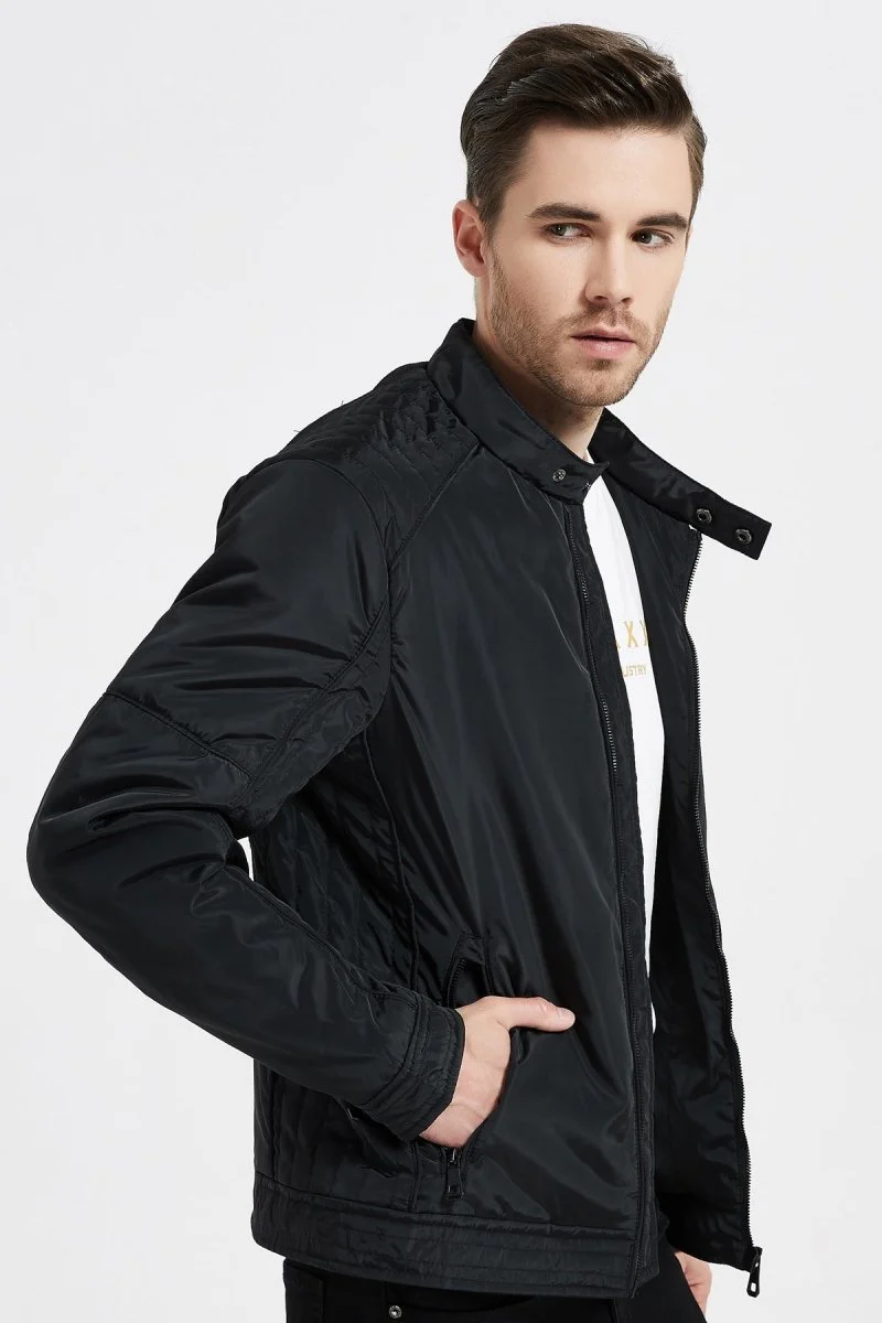 Blouson de mi-saison. Col officier sous patte pressionnée. Matière déperlante « Technology Water Repellent ». 2 poches zippées sur les côtés. Surpiqûres à la taille et aux poignets.
