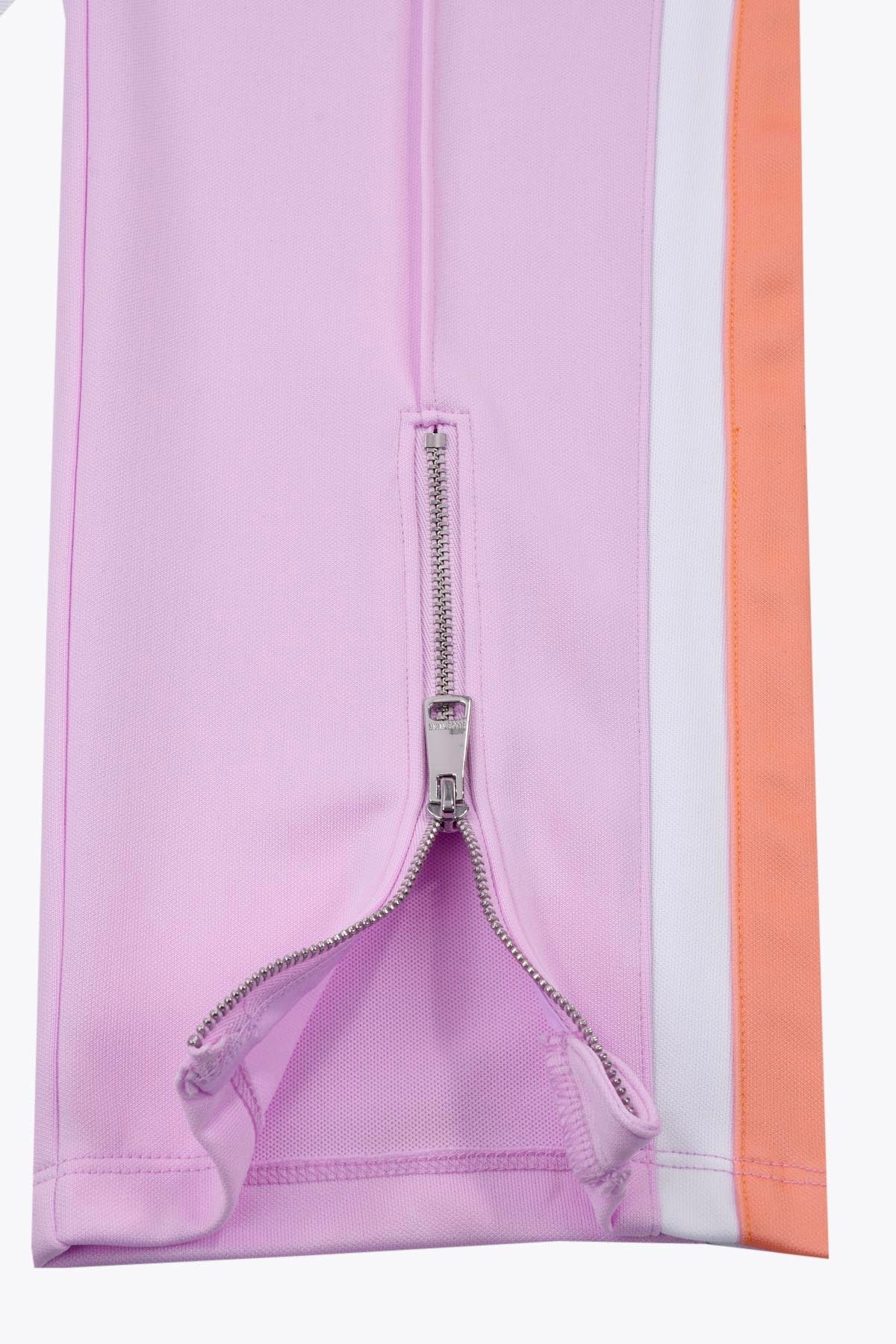 Réalisée en nylon (Jersey) de couleur rose, elle est contrastée de deux bandes de satin orange sur le devant, d’un élégant empiècement blanc en haut des manches, du logo EGOCENTRIK sur les épaules ainsi qu’une puce au couleur de la marque brodée sur le coeur. Elle possède 2 poches latérales zippées et des finitions élastiques.