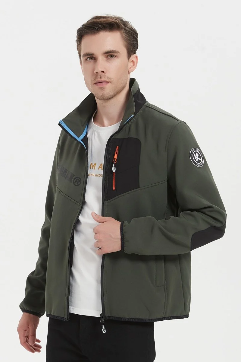Veste moderne style polaire ou veste de ski, Large col chemise bicolore, 2 poches zippées passepoilées sur les côtés, Logotypes Kymaxx, Empiècement sur les coudes, Finitions avec des biais colorés, Tissu déperlant « Water Repellent Technology »
