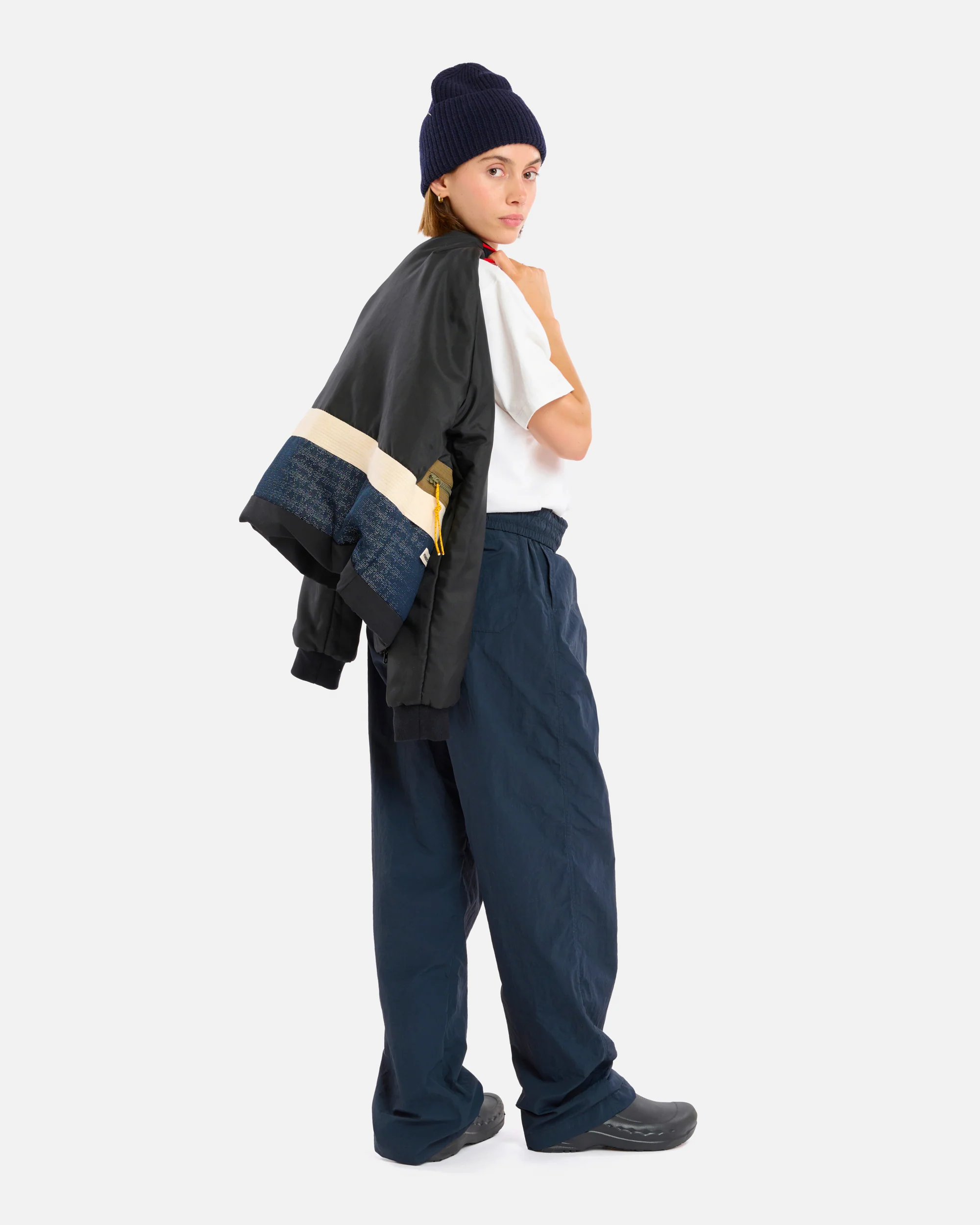 La PRUNE TECHWOOL est une veste courte réversible, pensée pour l’hiver et la mi-saison. Son zip double curseur permet une grande liberté de mouvement, tandis que les finitions en bord-côte aux poignets assurent un confort optimal. Le col en tissu ton sur ton ajoute de la continuité à la silhouette, et la bande rouge décorative au dos, en chevron, signe le style HOMECORE avec subtilité. L’envers et l’endroit s’alternent selon l’humeur, pour deux looks en une seule pièce.