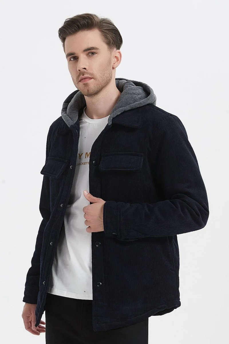 Nous vous présentons la veste BLAKE ! Une veste cousue dans un tissu en velours côtelé matelassée absolument parfaite à la mi-saison. C’est un modèle au look surchemise avec une capuche sweat en coton intégrée. Un veste moderne tendance qui permet d’arborer un look streetwear sans l’épaisseur du sweat intégral.